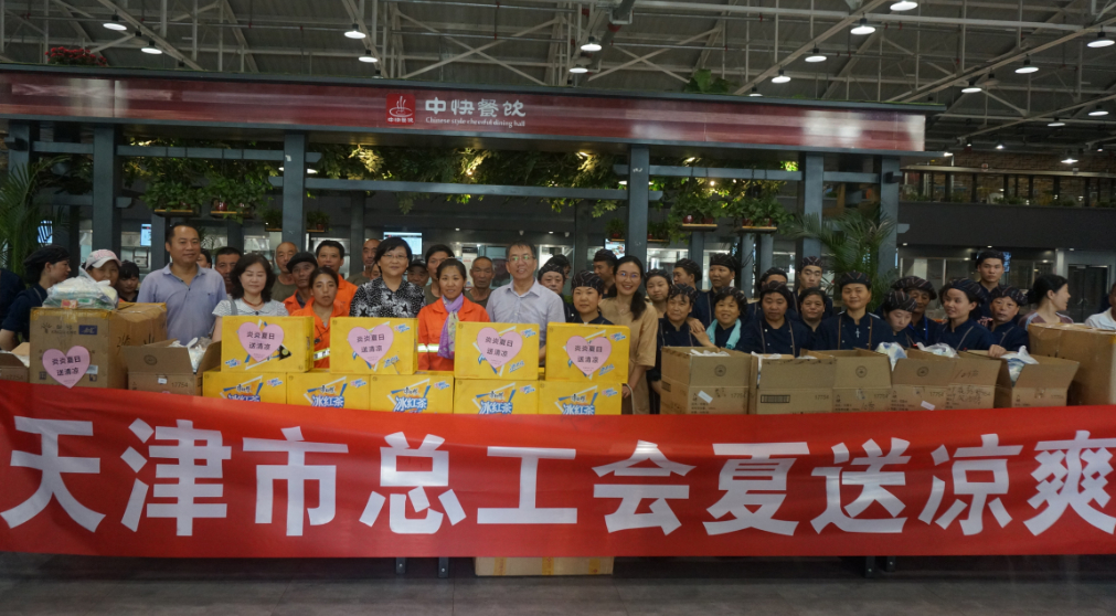 此次慰问由天津市总工会专款支持,统一安排,由市总工会领导带队,现场进行夏送凉爽活动,校工会精心准备了高温作业岗位工人的降温必需品,慰问了我校在露天、高温高湿等环境下坚持工作的一线职工和农民工共500多人。炎炎夏日,市总工会把组织的关怀送到职工心中,把清凉留在职工心间,充分体现了工会组织对职工的关爱,是职工贴心的娘家。