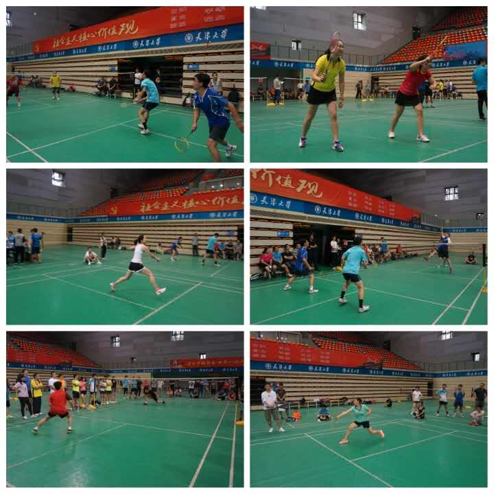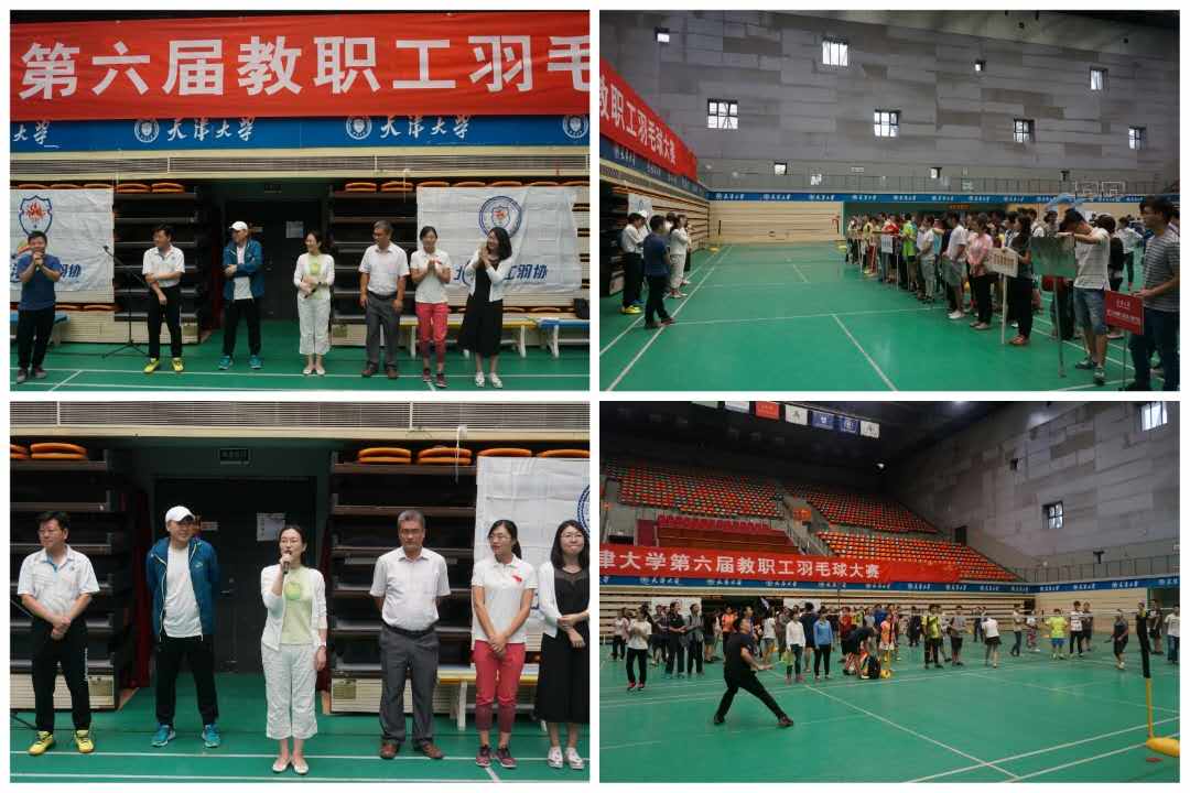 9月23日-24日,由校工会、体育部、场馆中心和天津大学教职工羽毛球协会共同举办的天津大学第六届教职工羽毛球大赛在卫津路校区体育馆成功举办。来自30个单位的近200名选手参加比赛。校工会常务副主席马桂秋,体育部党总支书记、体育部主任韩文俊,出版社社长张树俊,场馆中心主任韩冰霜以及各院级单位工会主席和教代会主任参加开幕式。教工羽协副会长曾明和上一届男单冠军戴卫平为比赛开球。