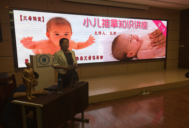 5月16日下午,天津大学快乐父母俱乐部“父母课堂”第一讲之“小儿推拿知识”在卫津路校区教职工文化活动中心多功能厅举行。本次“父母课堂”邀请天津御源堂诊所常勤医师王津为老师们带来一场关于小儿推拿的知识讲座,活动由校青年教师联谊会副会长关静主持,来自20多个学院和部处的40多位老师参加了活动。
