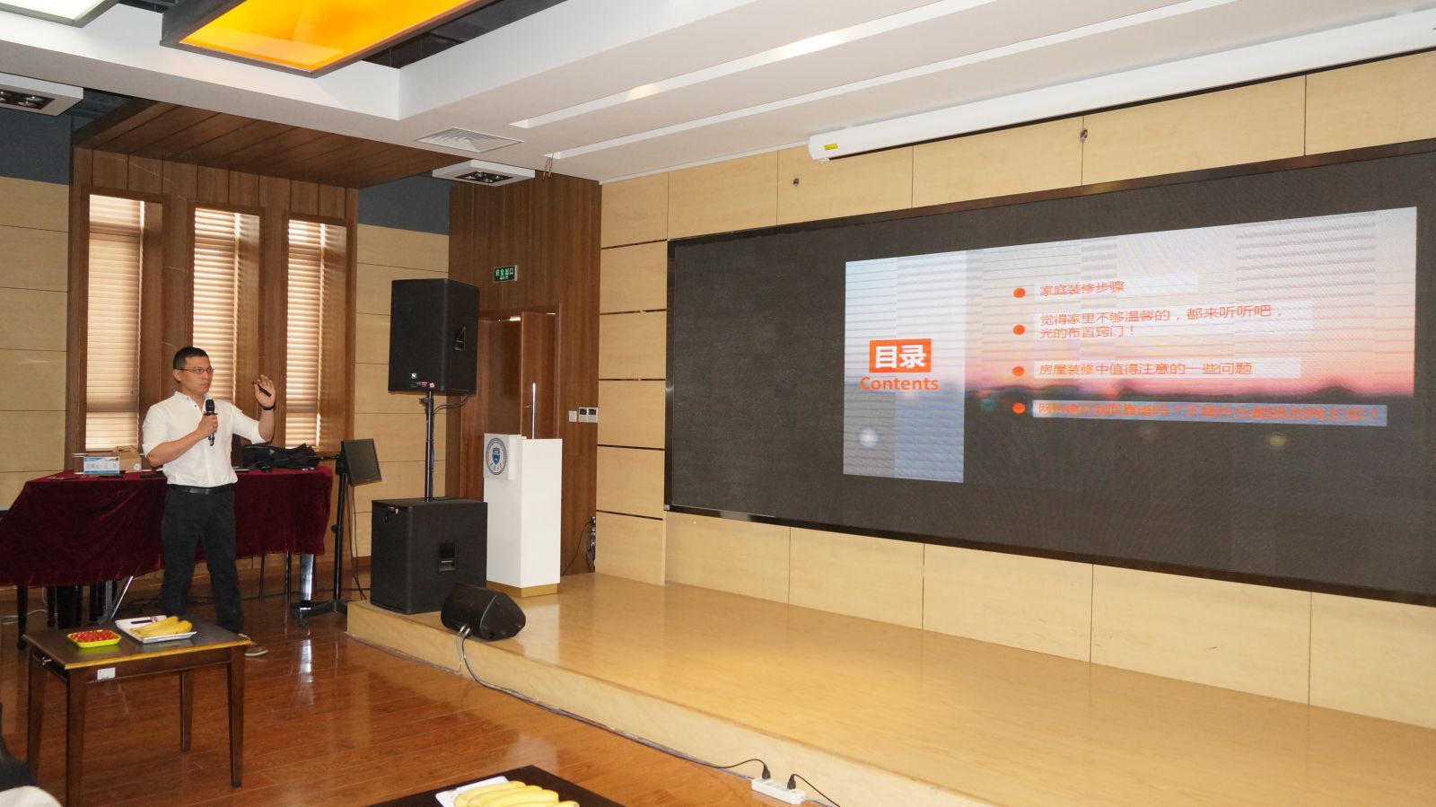 在购房后室内装修是教师们非常关心的问题,从室内装修步骤、装饰设计中灯光的作用、装修中注意要点和网购材料的安全性等方面, 讲座充分总结了目前室内装饰设计和装修中存在的问题,解决了大家的困扰,更好地提升室内装饰的整体效果。