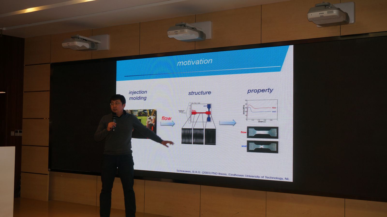 马哲从日常生活中的一些常见的高分子材料出发,采用通俗易懂、深入浅出的讲座风格,以高分子材料加工条件-结构-性能的关联为主线,逐步引入高分子材料加工过程中流动场对高分子材料结晶性的影响。结晶性高分子材料由于成本低和结构功能多样性等优点广泛应用于各个领域。而这类高分子材料在加工过程中不可能避免地要引入流动场,因此必然要面对流动场诱导的有序和结晶。目前虽然对流动场诱导结晶已经有了比较丰富的现象学积累,然而仍然没有一个令人满意的理论。为了解决流动场诱导结晶中的基础科学问题,必须要找到一种能够有效地研究流动场参数和高分子结晶行为之间关系的科学方法。马哲以原位X射线散射检测技术为手段系统研究了高分子流动诱导结晶,全程追踪了高分子在流动剪切应力作用下成核与生长的过程,积累了可靠的实验数据。报告结束后,现场观众就原位X射线散射检测技术与马哲进行了进一步的交流与讨论。