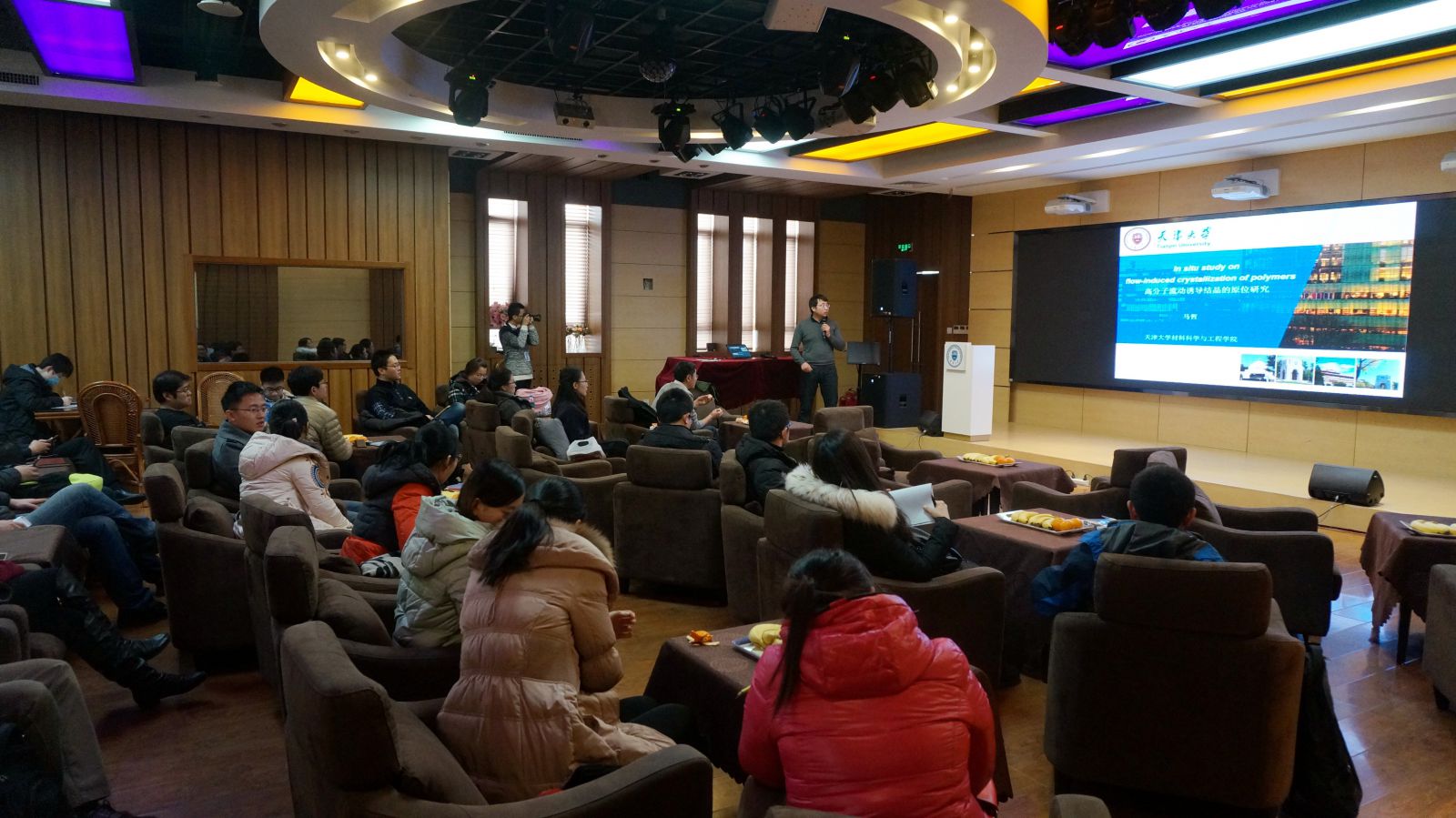 (通讯员 孙晓红 程超超)12月18日,第50期青椒学术沙龙在天津大学卫津路校区教职工文化活动中心举行。材料学院副教授马哲带来题为《高分子流动诱导结晶的原位研究》的学术报告,沙龙由校青年教师联谊会副理事长、信息学院副教授谢生主持。沙龙吸引了材料学院、信息学院、理学院、校机关等各个单位的60余名青年老师参加。