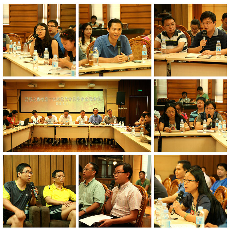 8月13日,天津大学在教职工文化活动中心多功能厅召开七届十六次教代会执委会全体会议,讨论并集中审议《关于调整绩效津贴标准的方案》、《关于北洋园校区教工食堂补贴的方案》、《北洋园校区公共交通解决方案》及《北洋园校区教工食堂就餐方案 》。校党委副书记、纪委书记兼工会主席汪曣,校长助理张力新,校党委常委、组织部长马春有,校教代会执委会全体委员,党办校办、后勤保障部、人事处、房产处、校工会、教务处、财务处等部处负责人,青年教师联谊会理事会全体理事及青年教师代表共60余人参加会议。