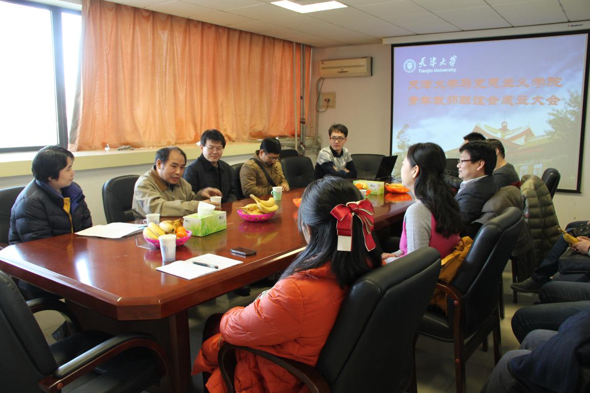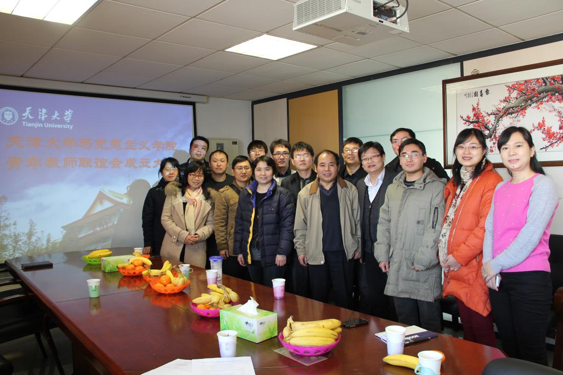 2012年9月25日,天津大学青年教师联谊会成立。为了响应学校号召,进一步增进青年教师之间的交流与合作,增强凝聚力,搭建青年教师成长成才平台,马克思主义学院开展了青年教师联谊会筹备工作,由青年教师推荐理事4名,为成立大会做好了准备。