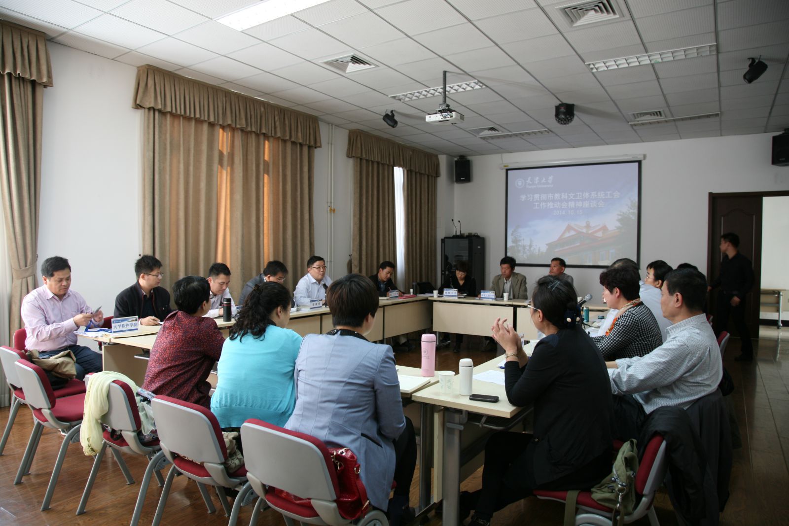10月15日,天津市教育工会在我校召开座谈会听取部分高校学习贯彻市总工会十六届九次全委会议和市教科文卫系统工会工作推动会精神即“三服务一加强”工作情况汇报。天津市总工会副主席、教育工会主席徐树青,天津大学党委副书记、纪委书记兼工会主席汪曣,市教育工会副主席刘伟、张家翔,以及天津大学、理工大学、科技大学、工业大学河北工业大学、城建大学、大学软件学院、市科学技术工会等八个单位的工会主席和专家20余人参加座谈会,座谈会由刘伟主持。