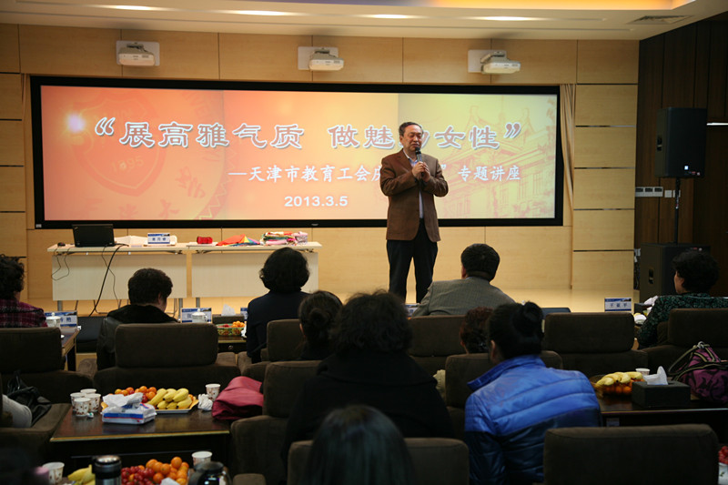 为庆祝“三八”国际劳动妇女节,进一步落实市总工会“面对面、心贴心、实打实服务职工在基层”和市教育工会“关爱劳模先进、服务专家人才、助推教育发展”主题实践活动,3月5日下午,天津市教育工会“展高雅气质 做魅力女性”专题讲座在我校教职工文化活动中心多功能厅举行。天津市总工会副主席、教育工会主席徐树青,天津大学党委副书记、纪委书记兼工会主席汪曣出席活动并为活动致辞。天津市教育系统女劳模先进人物代表、女工会主席等女性代表近百人参加了活动,我校2012年全国“三八”红旗手获得者王雪青也参加了活动。