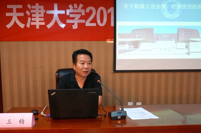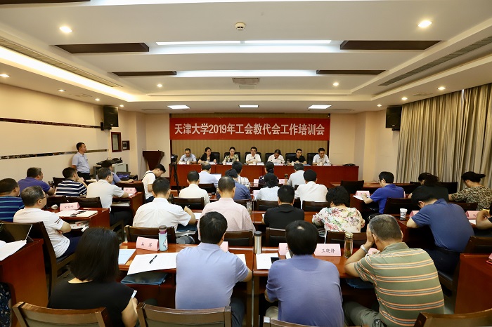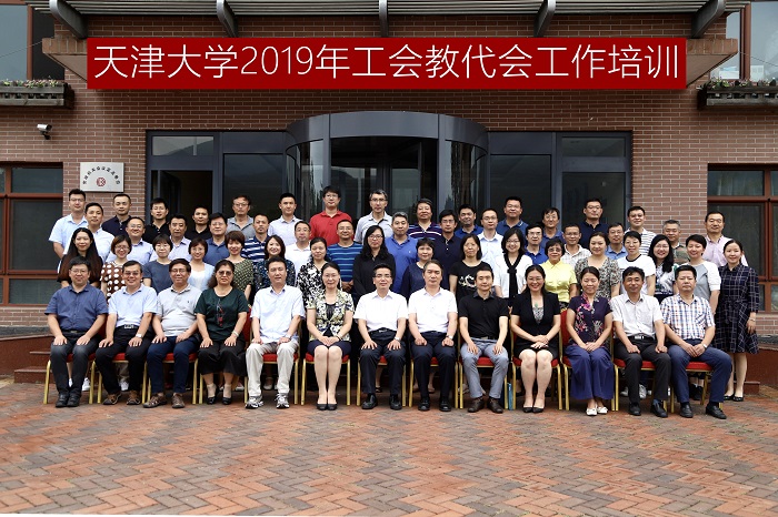 (通讯员 温锌勇 摄影 赵习钧)8月5日—7日, 天津大学2019年工会教代会工作培训会在天津市总工会职工培训基地举办。中国教科文卫体工会全国委员会主席章国贤,天津市总工会副主席葛英秋,天津大学党委副书记、工会主席、教代会主任赵美蓉出席会议并讲话,中国教科文卫体工会教育工作部部长刘飞、天津市教育工会副主席张家翔参加了开班仪式,各院级单位党组织书记、工会主席、教代会主任及专职工会干部60余人参加培训。在三天的培训中,全体学员认真学习领会习近平总书记关于工人阶级和工会工作的重要论述以及中国工会十七大精神,并通过专题讲座、分享交流、分组讨论、理论业务知识测试等形式,对工会教代会工作进行了系统的学习。