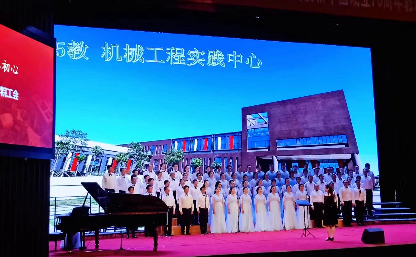 教职工们在嘹亮的歌声中回顾历史、憧憬未来,展现出昂扬的精神状态。校领导与全体教职工合唱《我和我的祖国》《歌唱祖国》等歌曲,将活动推向高潮。