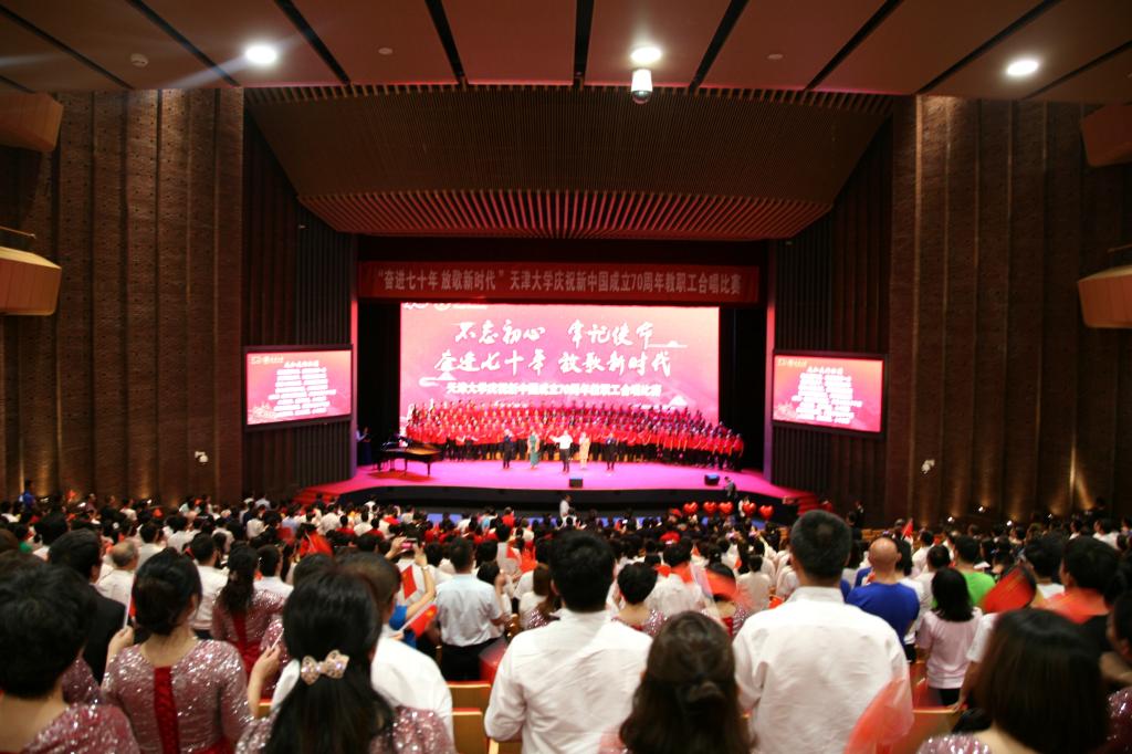 沧桑巨变七十载,砥砺前行向未来。9月12日,天津大学庆祝新中国成立70周年教职工合唱比赛在北洋园校区求实会堂隆重举行。校党委书记李家俊,校长金东寒,校领导孙广平、雷鸣、张凤宝、赵美蓉、巩金龙、张力新、刘宁、贾启君出席活动,由各院级工会组成的30支队伍、1800名教职工参加了活动。本次活动由党委宣传部、党委教师工作部、校工会联合举办,由各院级党组织书记或工会主席担任评委。