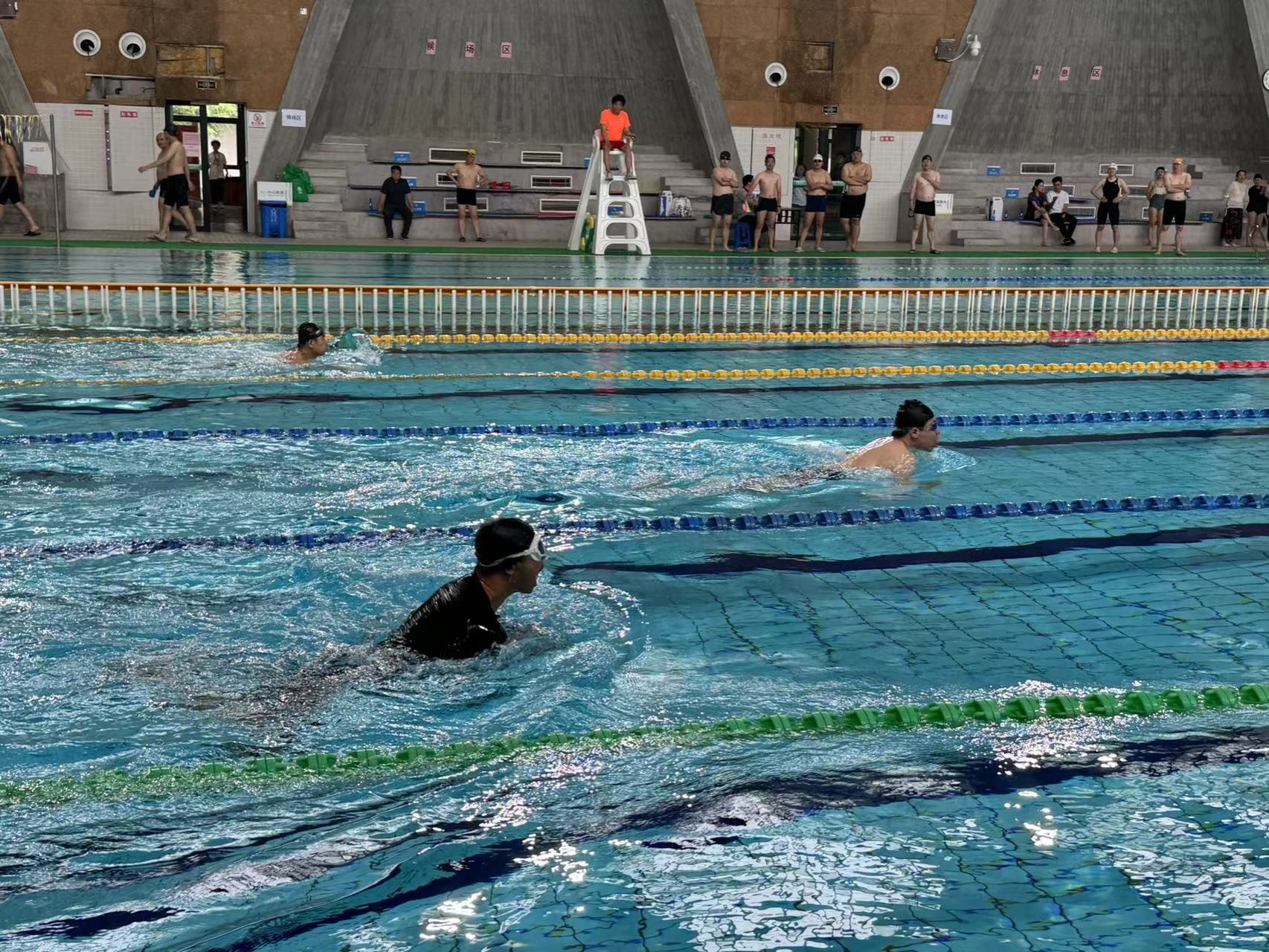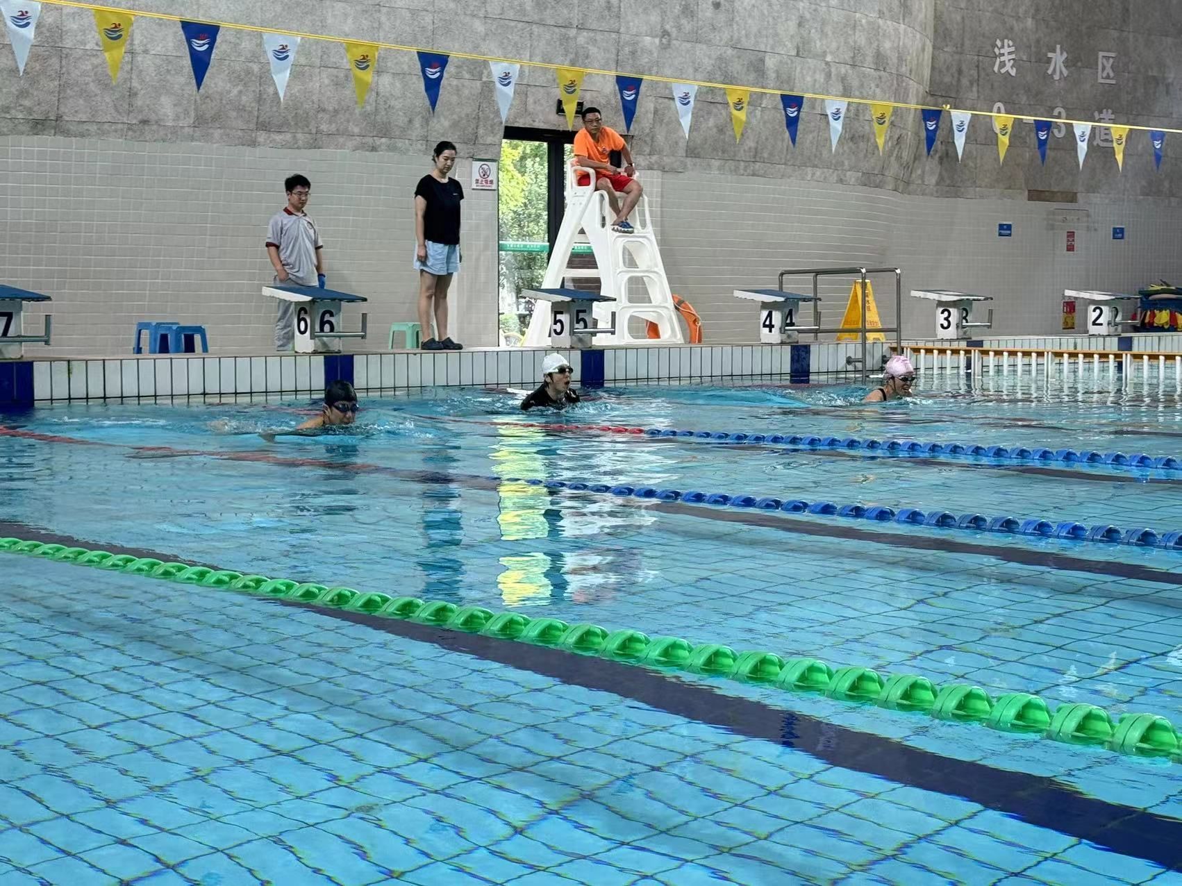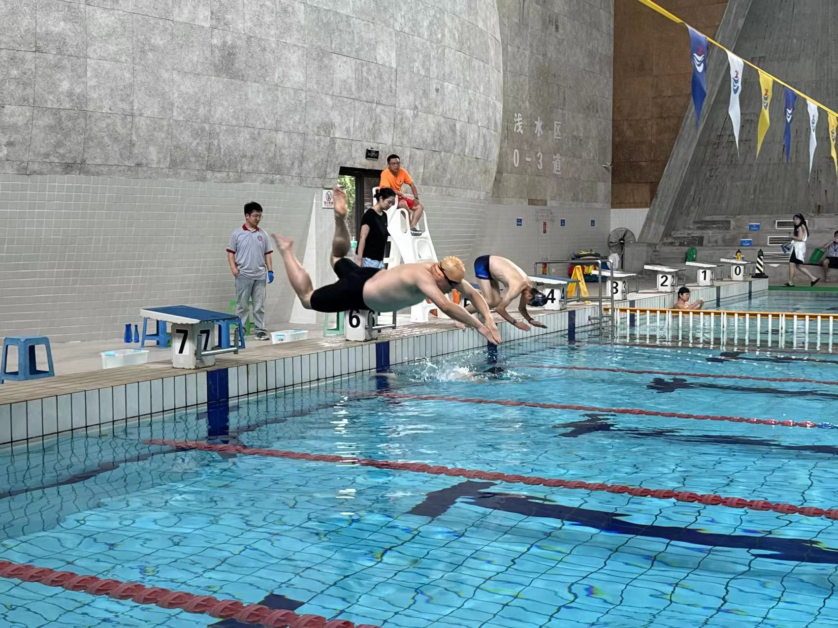 本次比赛设置男女中青年、中老年组自由泳、蛙泳等项目,开放4条泳道,4人为一小组同时开赛。比赛现场,随着裁判员的一声枪响,参赛教职工如同离弦之箭跃入水中,大家本着友谊第一、比赛第二的原则,在泳池里劈波斩浪,奋勇争先,充分展现出我校教职工健康的体魄、奋发的面貌、昂扬的斗志。