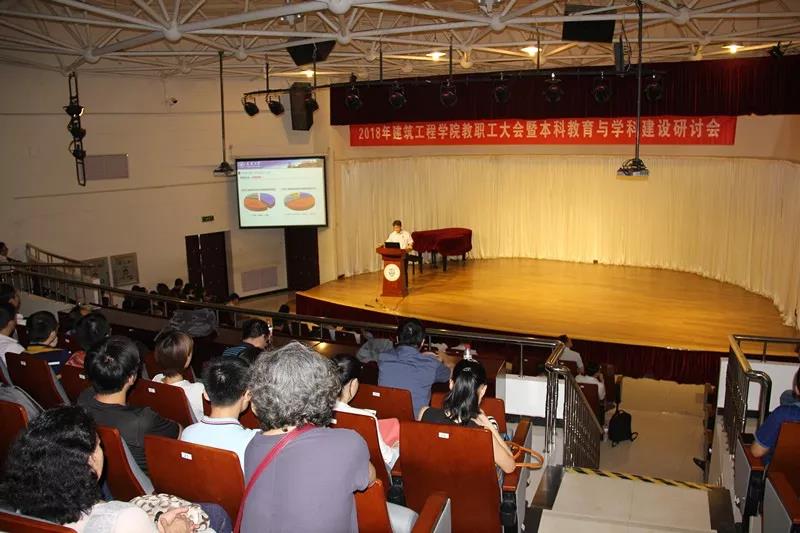 7月7日,建筑工程学院2018年教职工大会暨本科教育与学科建设研讨会,在天津大学卫津路校区大学生活动中心报告厅举行。建工学院党委书记练继建,院长韩庆华,党委副书记、工会主席李京霖及学院新一届行政领导班子和学院教职工近200人参加了会议,会议由副院长王葳主持。