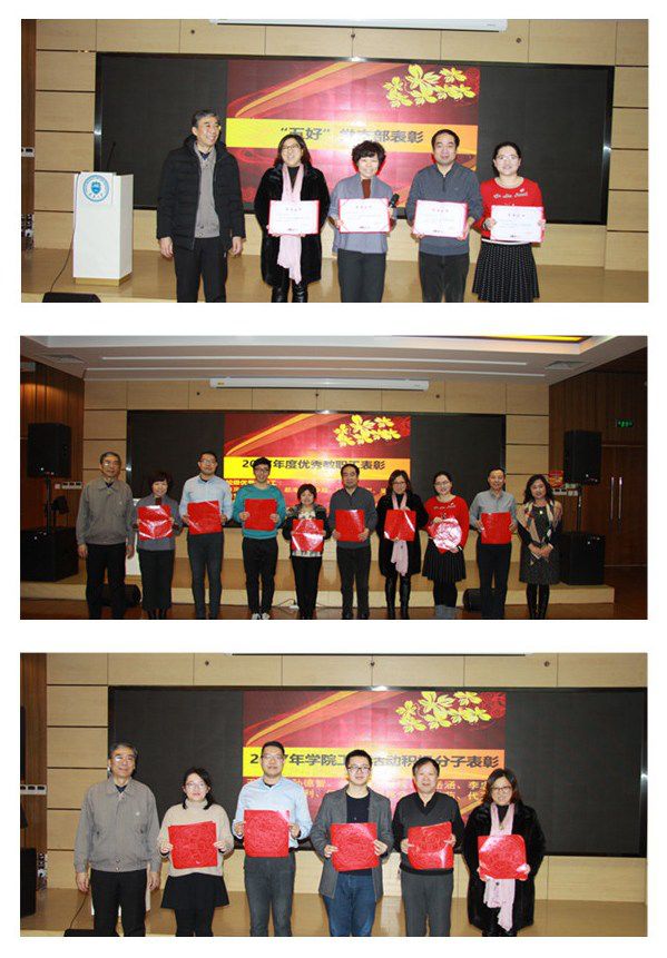 会上表彰了“五好”党支部、考核优秀教职工、学院工会活动积极分子,并邀请孙纪利老师做退休发言,由院领导向狗年生肖本命年老师颁发特别纪念奖。