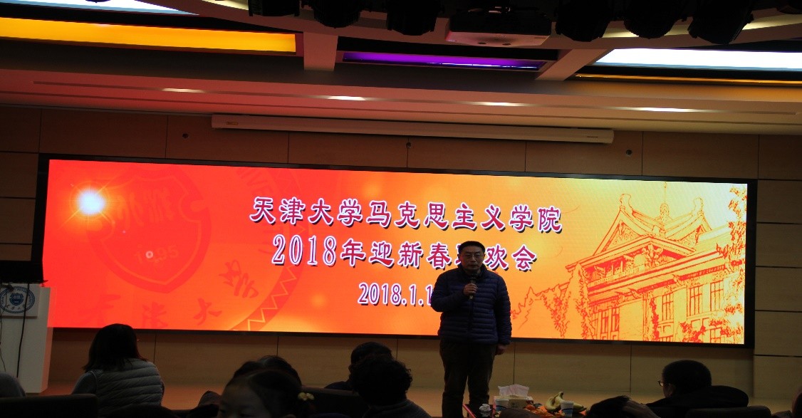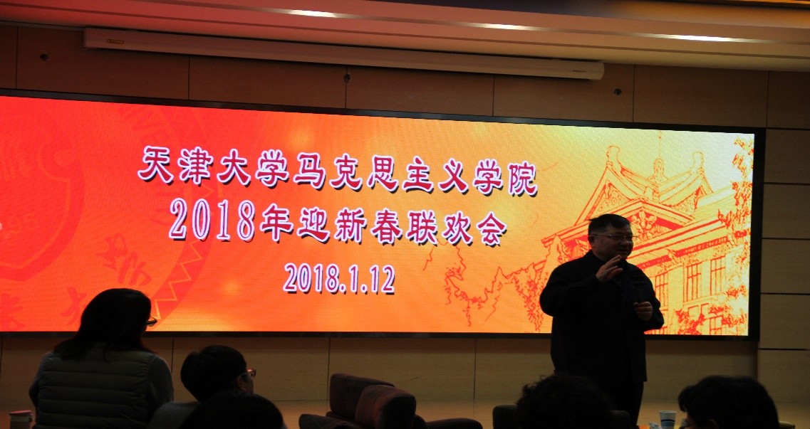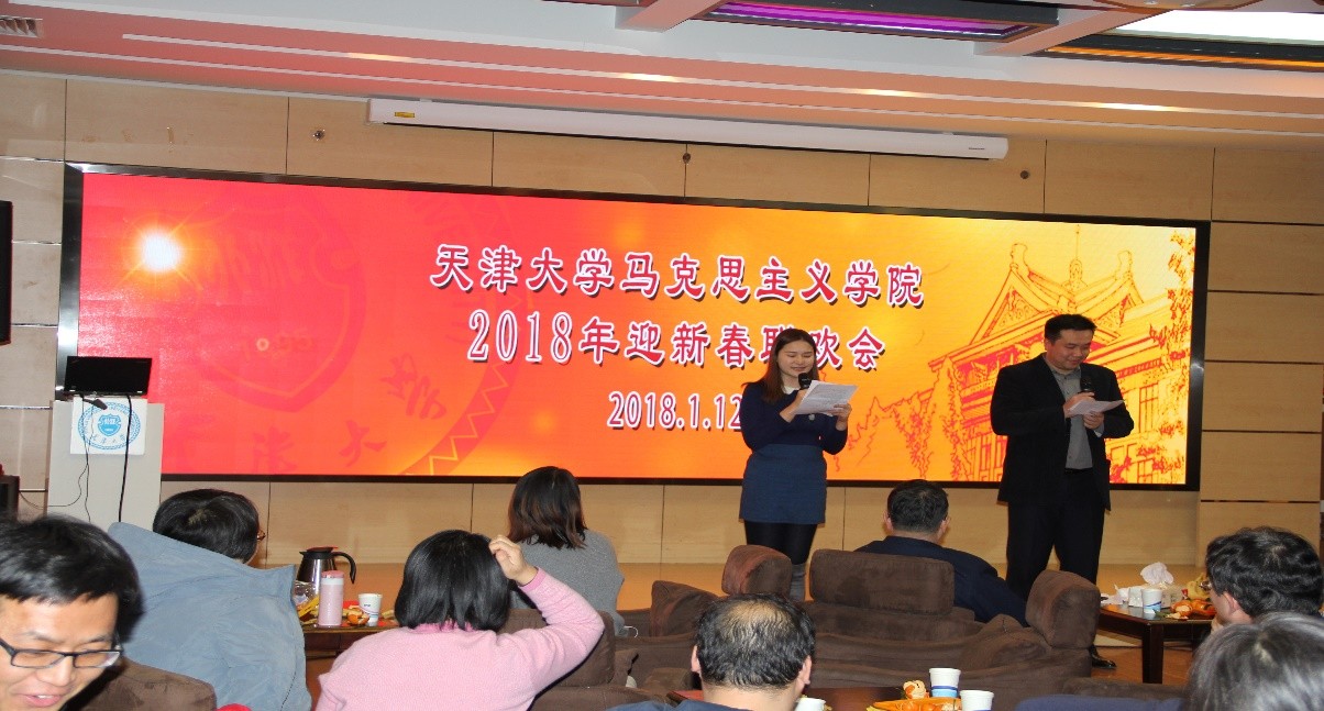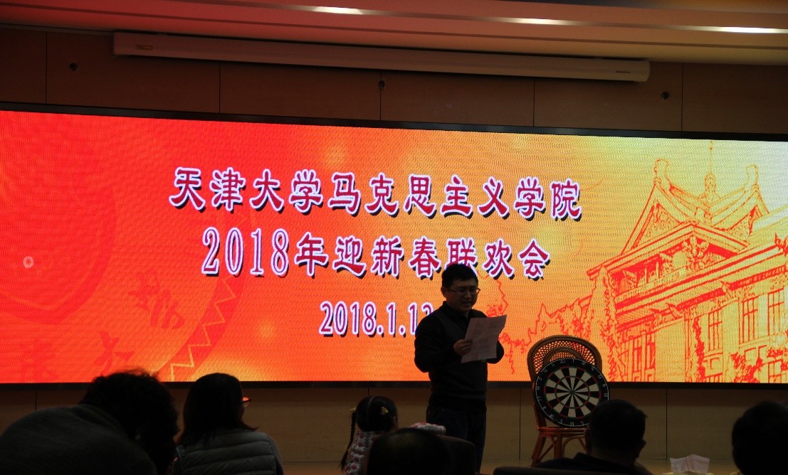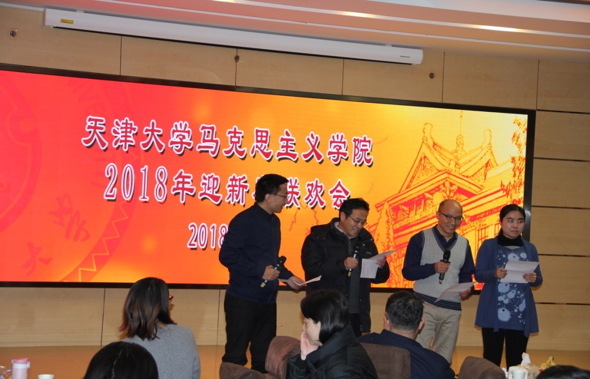 2018年1月12日下午,“天津大学马克思主义学院2018迎新春联欢会”在天津大学卫津路校区教职工活动中心举办。全院教职工欢聚一堂,载歌载舞,共迎新春。