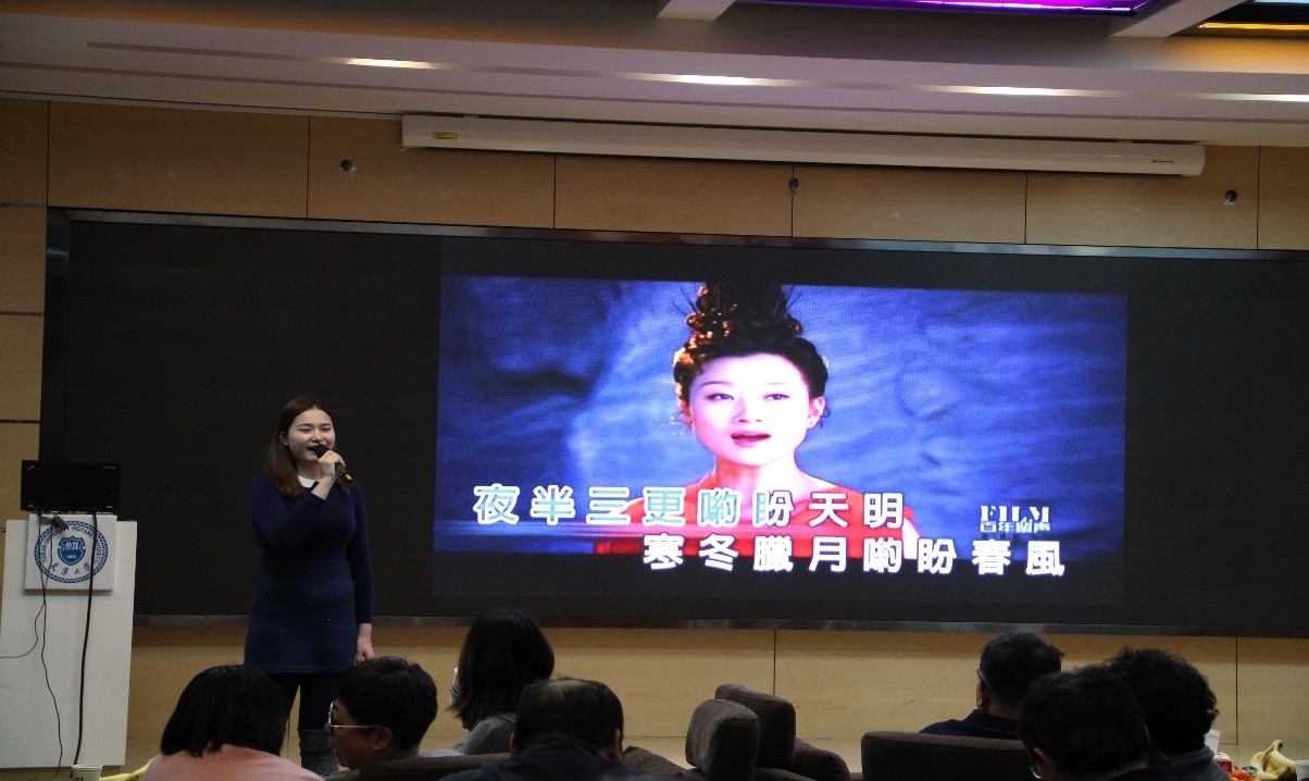 联欢会由学院教师张巍和刘楠主持,分为节目表演以及穿插节目之中的游戏两大环节。全院5个教研室以及行政办公室的教职工通过“积极参与、自主选报”的方式共有12个节目脱颖而出,容括歌曲、舞蹈、京剧、朗诵等多种文娱表演形式,既有单独表演,也有集体汇演。