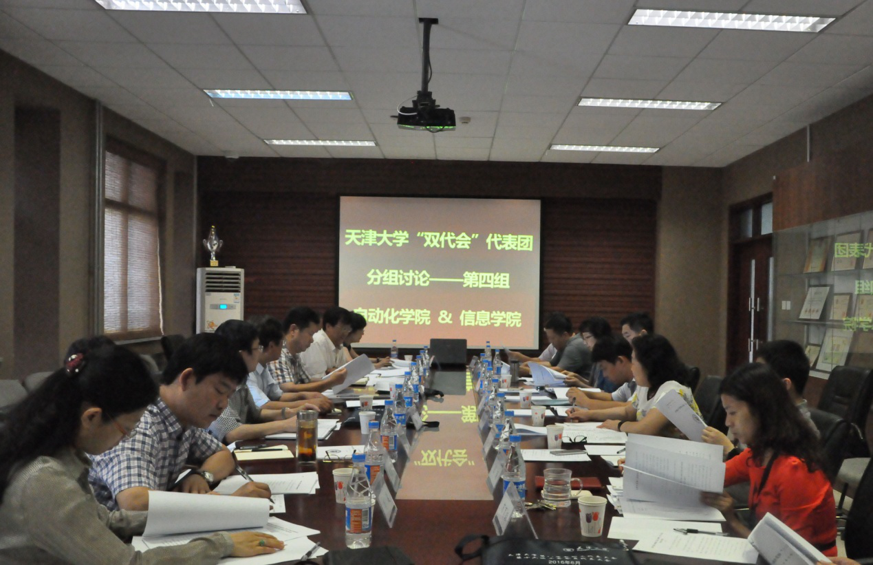 6月6日上午,天津大学“双代会”信息学院、自动化学院代表团讨论会在我院第二会议室召开。会议讨论并审议了《天津大学事业发展“十三五”规划》、《工会、教代会工作报告》、《大会决议》(草稿)、《工会委员会、教代会执行委员会及各专门委员会候选人名单》。会议由自动化学院代表团团长李继平主持,信息学院、自动化学院代表团成员参加了讨论,刘东志副校长出席了本次讨论会。