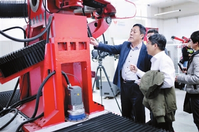 他是机械制造领域的领军人——黄田。照片旁边和他一起出镜的,是他带领课题组研制的非球面光学元件精密抛光机器人。