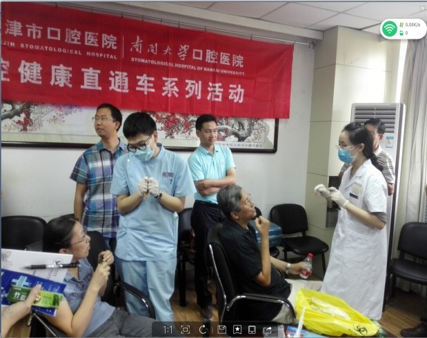 随后,冯主任及其团队人员兵分两组,一部分专家为各位老师进行答疑解惑,并就天津市口腔医院的专家义诊登记预约。另一部分专家现场为老师们进行了牙科义诊,并就每位老师的情况进行了耐心详细的交流,为每人制定了个性化的牙科诊疗计划。