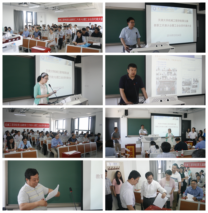 (通讯员 张洁 摄影 关毅)5月24日,机械工程学院在新校区召开第五届教职工代表大会暨工会会员代表大会,选举产生天津大学第八届教代会代表、第十六届工代会代表,新一届工会委员以及新一届教代会主任、副主任。会议由机械工程学院团委书记刘岳主持,学院教代会代表和工会会员代表出席会议。