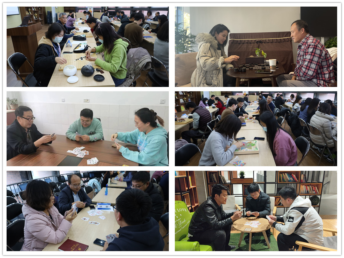 比赛项目包括象棋、跳棋、五子棋、斗地主和掼蛋五种,每位教职工可任意选择一项。在比赛过程中,大家你来我往、见招拆招,展现出各自的精湛技艺。有人果断出击,有人陷入焦灼,有人费尽心思,有人运筹帷幄,现场气氛热烈异常,不时爆发出阵阵笑声。