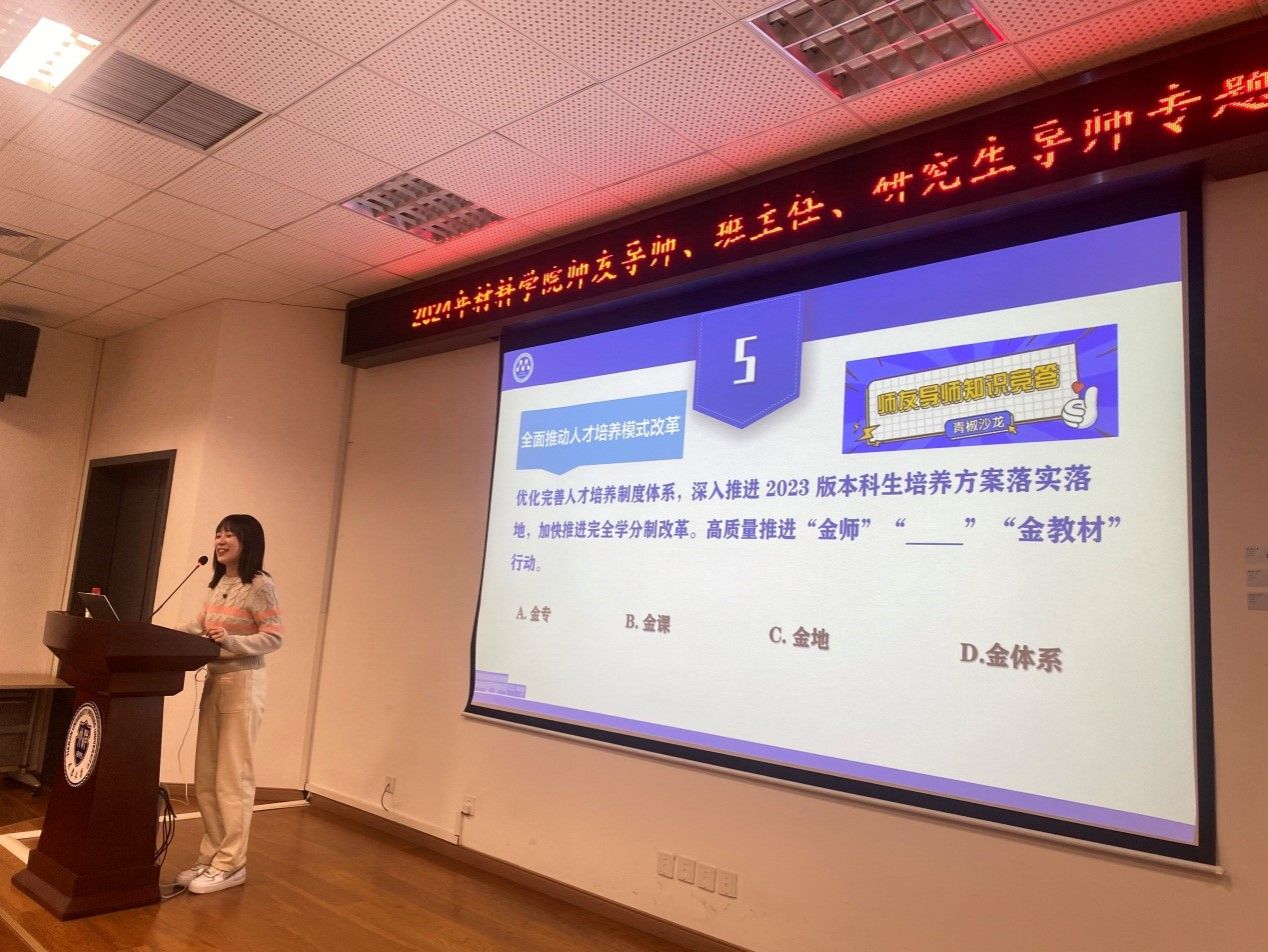 为深入学习习近平总书记关于教育的重要论述,落实立德树人根本任务,推进材料学科教育创新发展,激励班主任、师友导师成为学生的良师益友,用心用力用情服务学生成长,近日,材料学院工会举办知识竞答活动,学院师友导师、班主任和部分研究生导师参与活动。