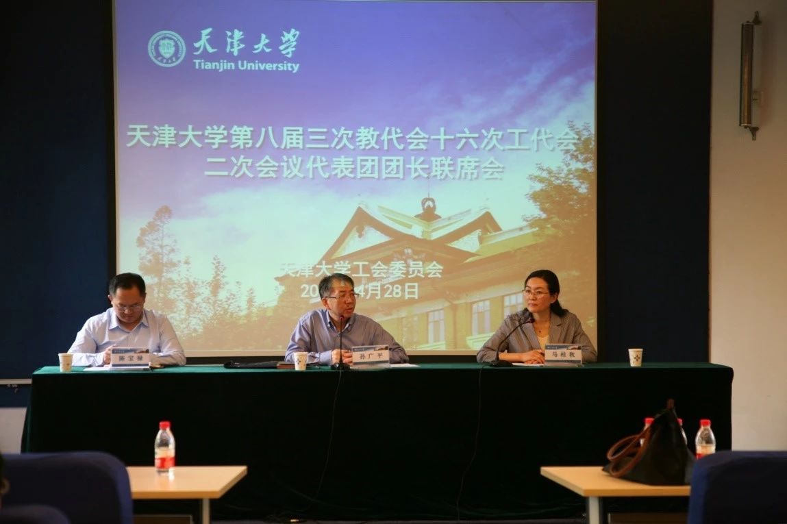4月28日下午,第八届三次教代会十六次工代会二次会议(下称“双代会”)代表团团长联席会在卫津路校区会议楼第八会议室召开。会议审议了“双代会”议程,通报了提案征集情况,听取了各代表团的审议情况及建议,并对会务工作进行了布置。“双代会”各代表团团长、第八届教代会执委会全体委员、第十六届工委会全体委员共50余人参加会议。校党委副书记、纪委书记、工会主席孙广平出席会议并讲话,校工会常务副主席马桂秋主持会议。