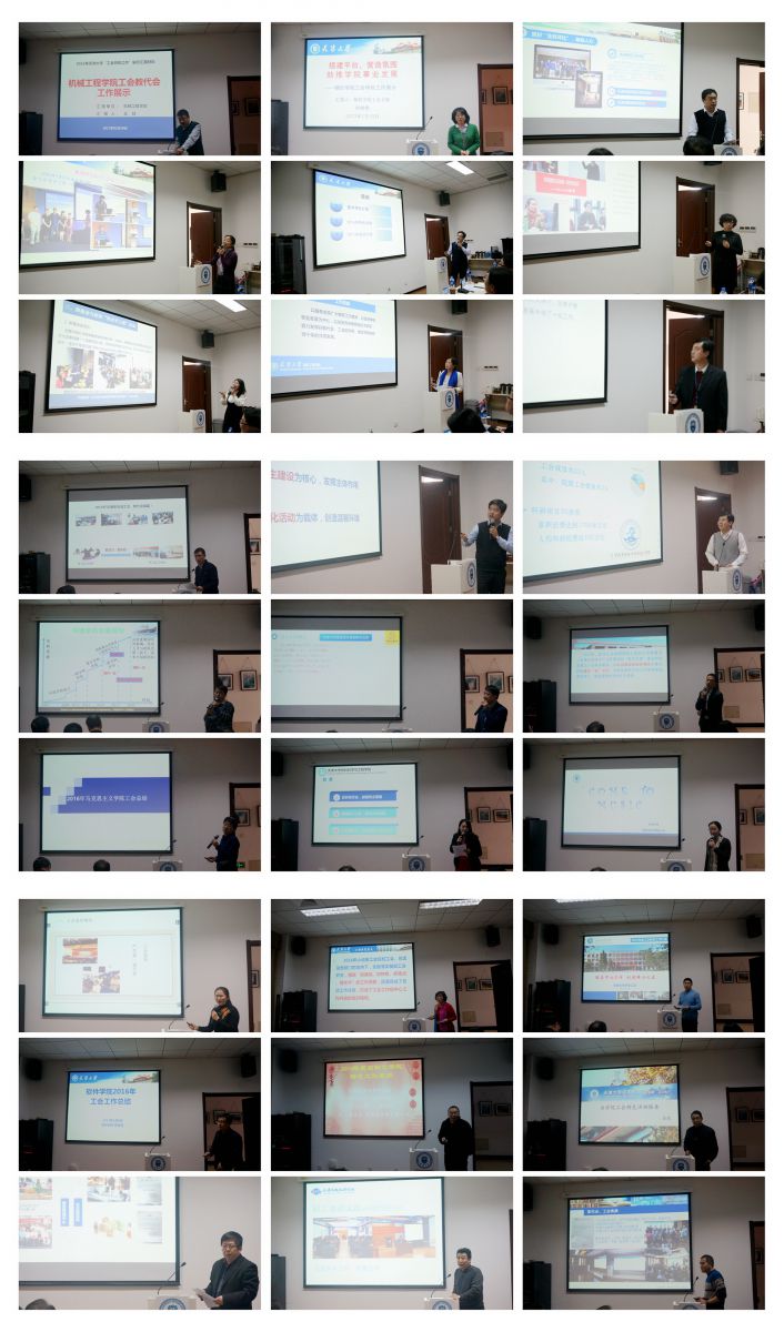 31个院级工会从群众性建功立业活动、教代会制度建设和作用发挥、师德师能建设、“小家建设”、特色立项、四点半工程等方面对2016年的特色工作进行了总结汇报。各院级工会结合本单位实际情况特色开展工会工作,有效促进中心工作开展、贴心服务教职工。自动化学院工会依托院青椒会开展“SYNC学术系列活动”搭建教师之间和师生之间自由分享、交流合作、协同创新的平台。机械学院工会充分发挥劳模先进群体的引领作用,加强劳模创新工作室创建、发挥良好的示范作用。经管学部工会坚持特色建设,继生日会、读书年、健康年之后,打造“音乐年”凝聚学部职工。设计总院工会特色开展劳动竞赛,开展“十佳设计师”、“十大管理服务先进个人”、“十大影响力项目”等活动激发全体职工建功立业。建工学院工会坚持三个角色(学院改革发展的促进者、和谐学院的建设者、教职工合法权益的维护者)蓬勃开展工会教代会工作。图书馆档案馆工会充分发挥图书馆的主阵地作用,以读者培训情景话剧、英莺细语活动、阅读推广讲堂、光影阅读、轻松学韩语等平台载体调动广大馆员参与到四点半工程中来。