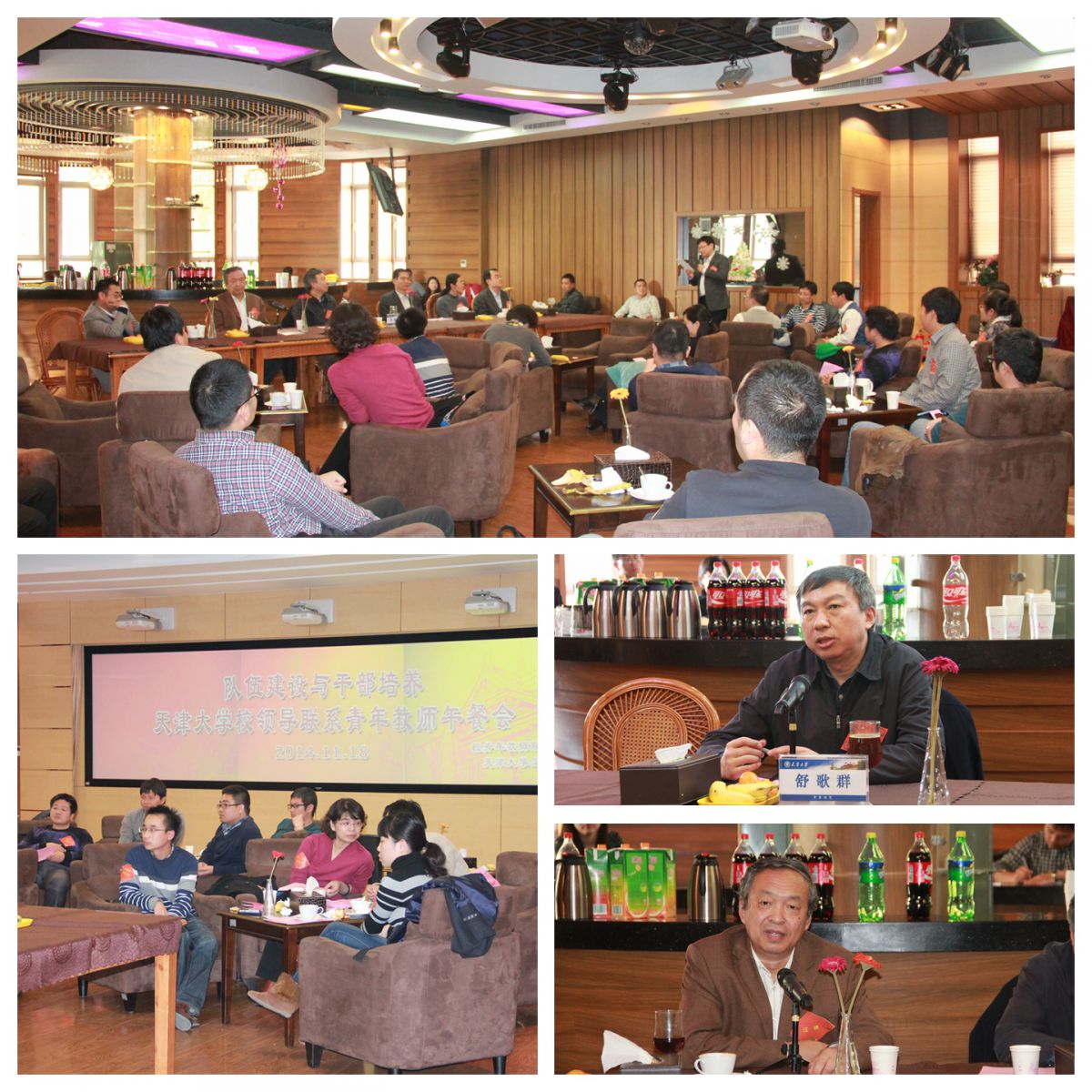 “校领导联系青年教师午餐会”是校工会和校青年教师联谊会共同创办的校领导与青年教职工沟通交流的平台,活动采取AA制,校领导、机关部处负责人借午餐和休息的机会与青年教师围绕学校事业发展重大问题及青年教师成长亟待解决的问题共同谋划,搭建了校领导与青年教师交流的无缝对接平台。午餐会活动每季度举办一次,该项活动自13年11月以来已经举办四期,先后邀请到校长李家俊,校党委书记刘建平,常务副校长钟登华,党委副书记、副校长舒歌群,党委副书记、纪委书记兼工会主席汪曣与青年教师共进午餐,共话天大发展。午餐会通过“天大青椒”微信和 QQ群投票征集广大青年教师的意见和建议,根据大家的投票来选取议题,青年教师还可通过微信群和QQ群报名参加活动。